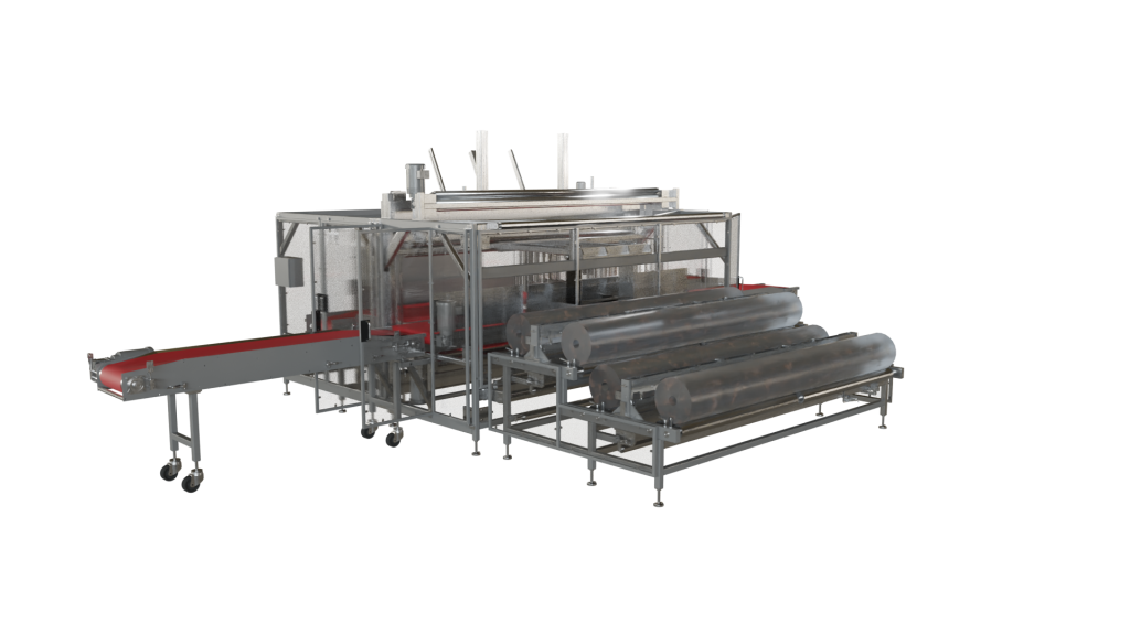 Roll Wrapping solutions for carpet, vinyl flooring, fabric, textiles, rubber, felt, and more. EDL’s roll wrapping machines are designed to wrap rolled products. Common applications include carpeting, foam padding, textiles and rolled building materials. The side feed layout of the roll wrapper allows for easy integration of additional modules for further system capabilities.